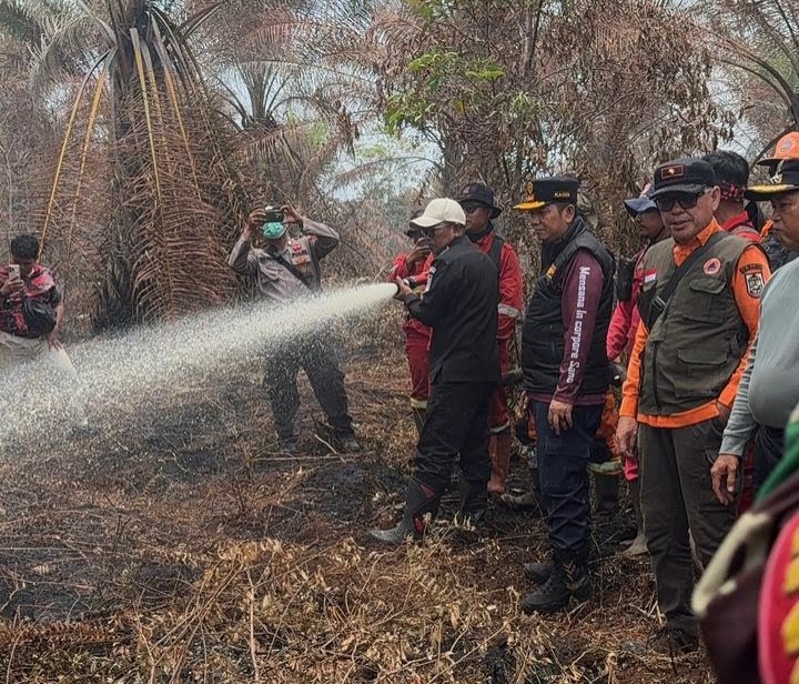 Bupati Pelalawan H. Zukri Turun Langsung Ikut Padamkan Karhutla di Desa Gambut Mutiara