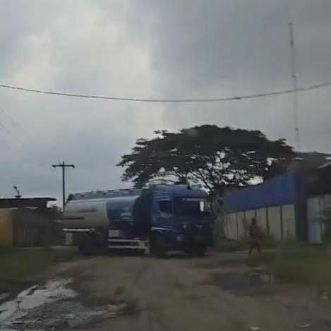 Hasil pantauan awak media di lapangan menemukan adanya sebuah mobil tangki berwarna biru masuk di area gudang.